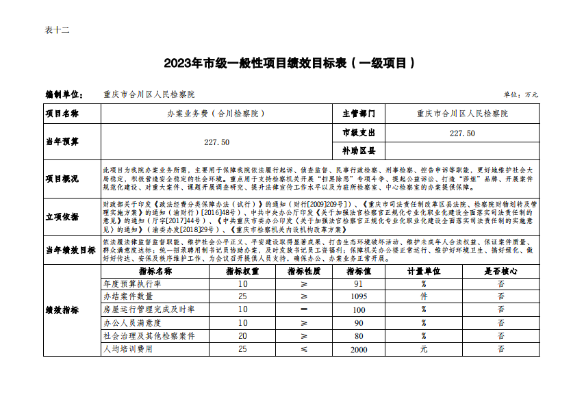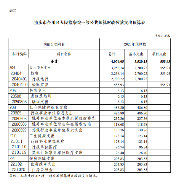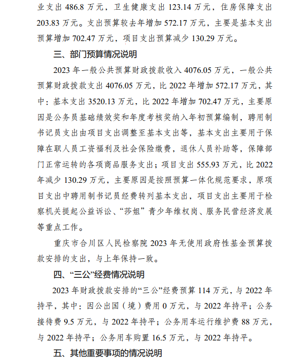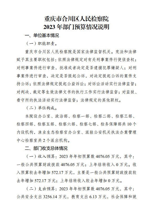 重庆市合川区人民检察院2023年部门预算公开