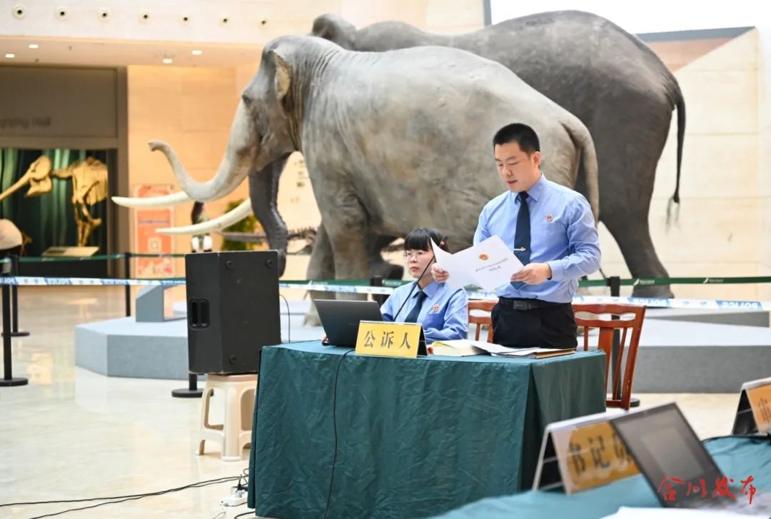▲在重庆自然博物馆巡回法庭刘永宏宣读起诉书