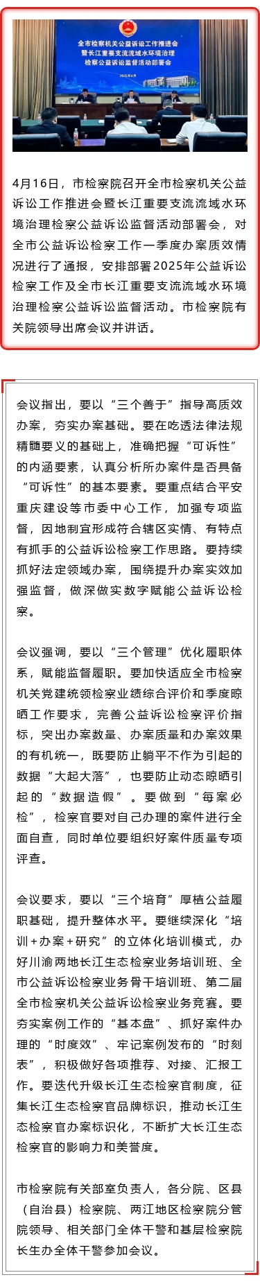 全市检察机关公益诉讼工作推进会暨长江重要支流流域水环境治理检察公益诉讼监督活动部署会召开