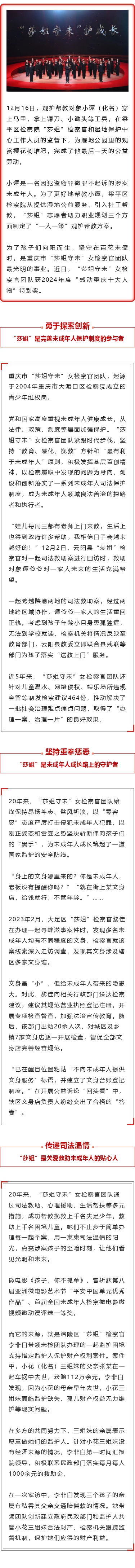 2024年度“感动重庆十大人物”特别奖 | “莎姐守未”女检察官团队:二十年“德法相伴”守护未成年人健康成长