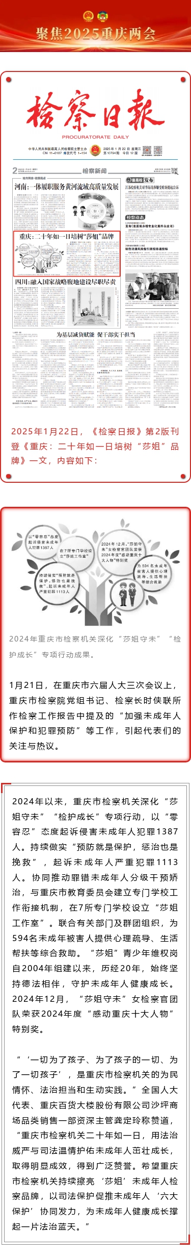 【检察日报】重庆:二十年如一日培树“莎姐”品牌