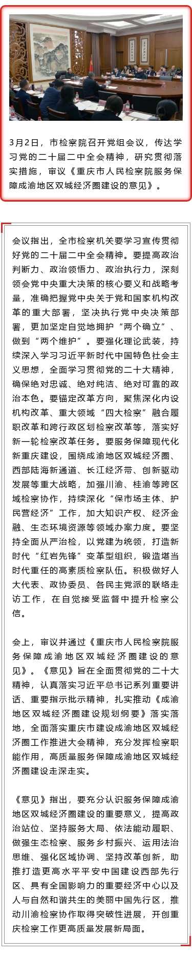 市检察院召开党组会议传达学习党的二十届二中全会精神