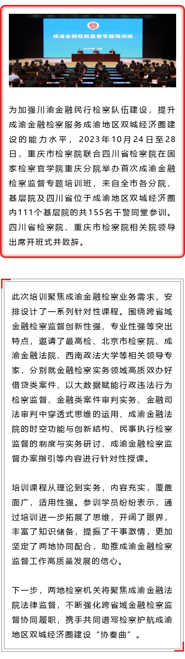 【服务双城经济圈】川渝检察联合举办首次成渝金融检察监督专题培训班