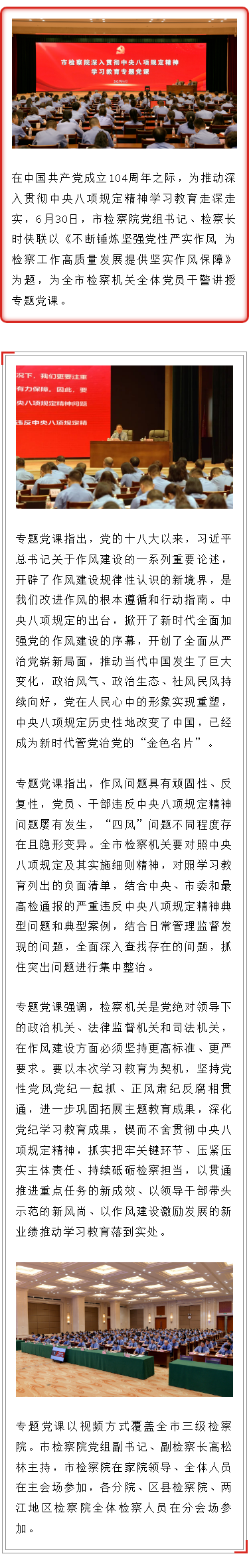 时侠联检察长为全市三级检察院干警讲授专题党课