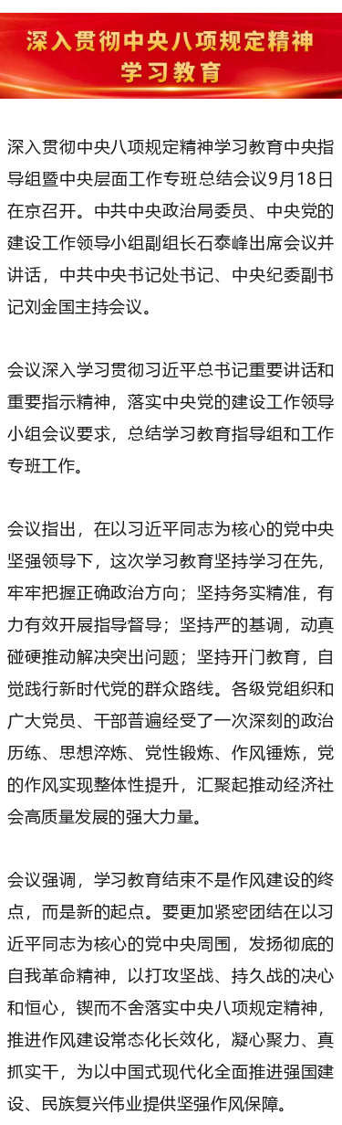 深入贯彻中央八项规定精神学习教育中央指导组暨中央层面工作专班总结会议召开