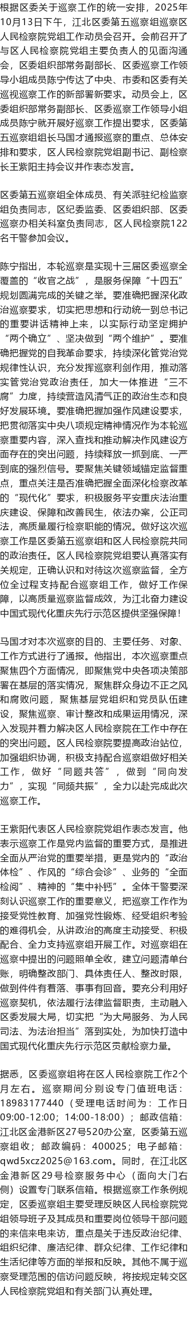 区委第五巡察组巡察区人民检察院党组工作动员会召开