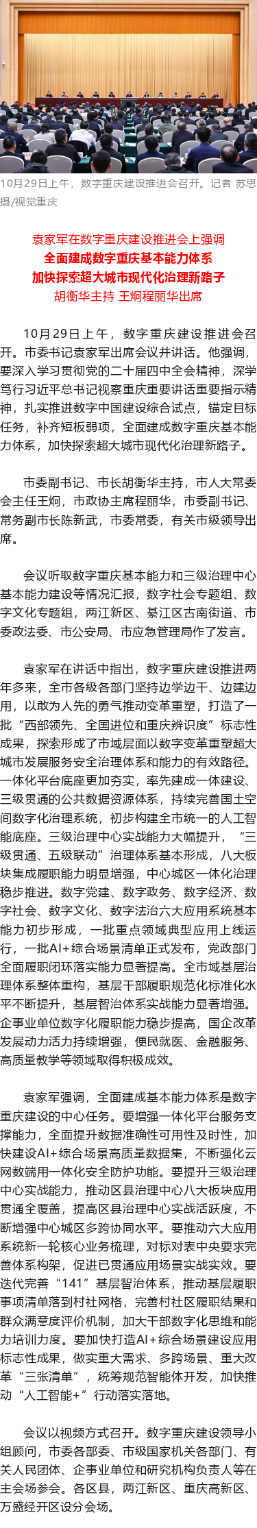 袁家军:全面建成数字重庆基本能力体系 加快探索超大城市现代化治理新路子