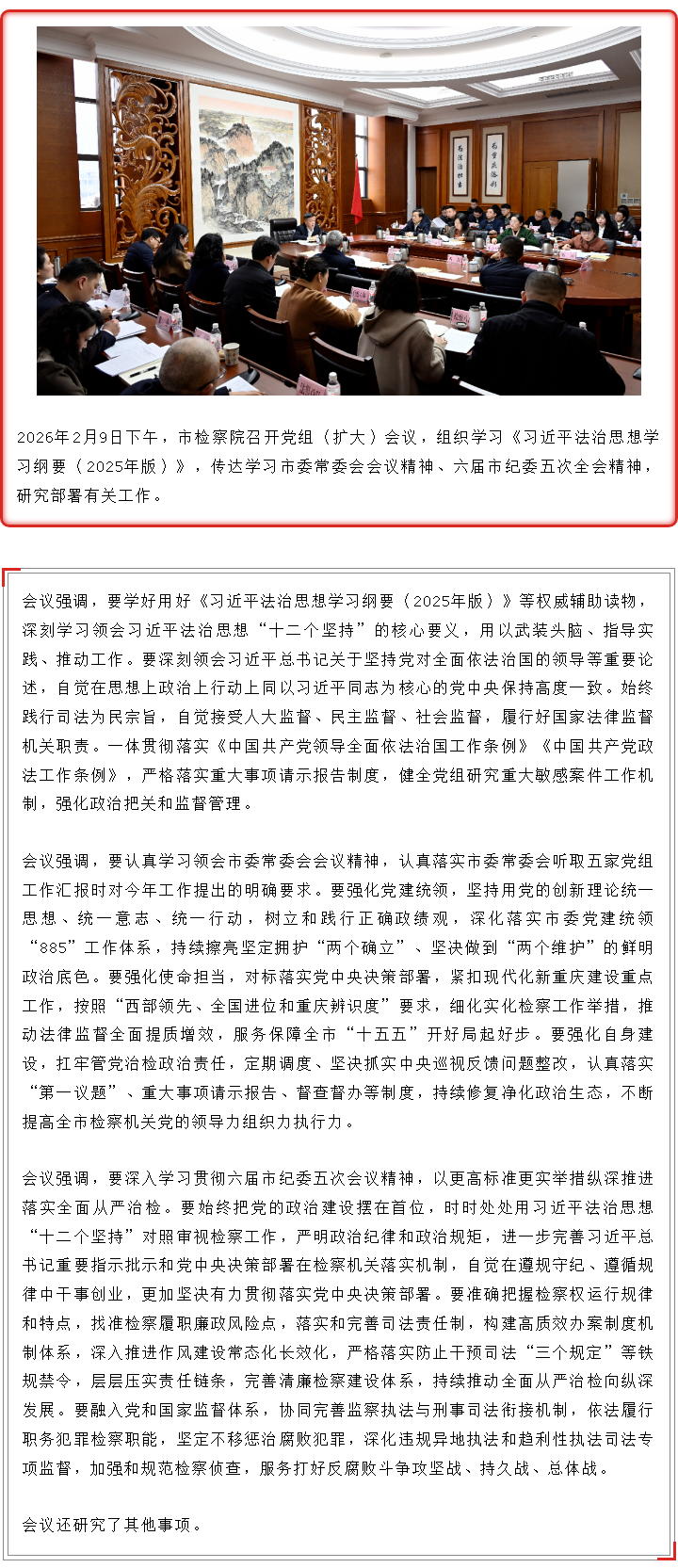 市检察院召开党组 (扩大)会议 , 研究贯彻落实市委常委会会议、六届市纪委五次全会精神举措