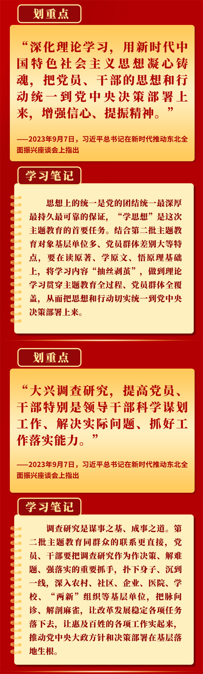 当前,第二批学习贯彻习近平新时代中国特色社会主义思想主题教育扎实推进。9月以来,习近平总书记在黑龙江、浙江、江西考察时,对第二批主题教育工作提出明确要求,为持续开展好这件“事关全局的大事”指明方向。一起学习。