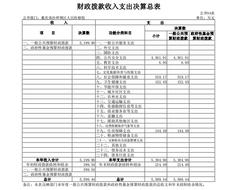 2019年度财政拨款收、支总计5,599.44万元。与2018年相比,财政拨款收、支总计各减少90万元,下降1.58%。主要原因是监察体制改革人员划转后支出减少。