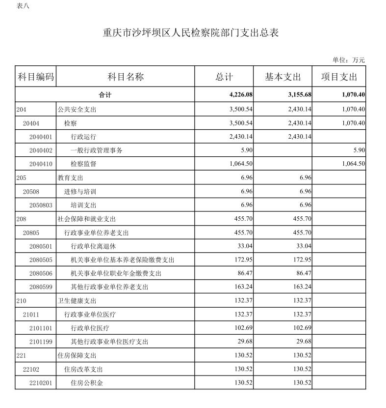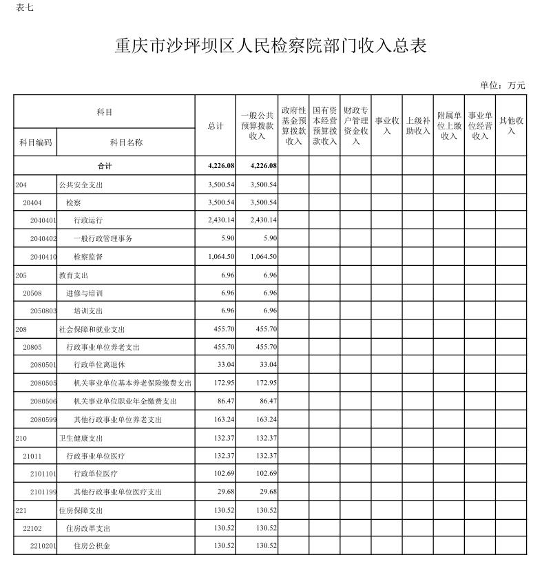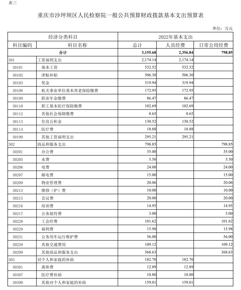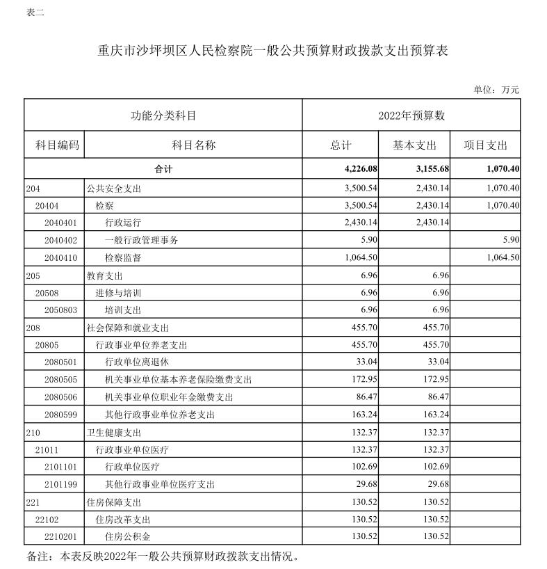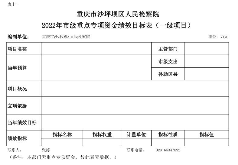 附:重庆市沙坪坝区人民检察院2022年部门预算相关表册(表一至表十二)