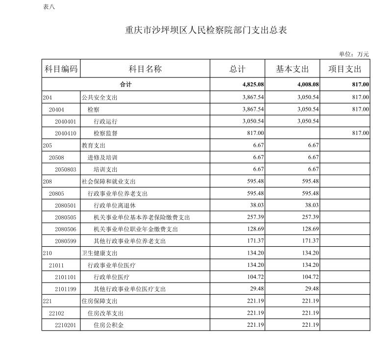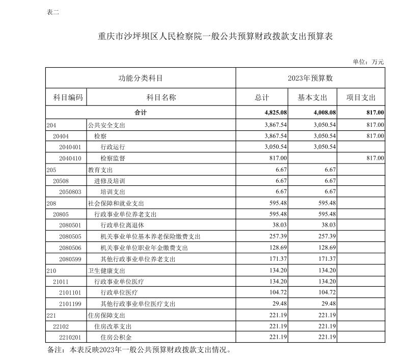 (二)支出预算:2023年年初预算数4825.08万元,其中:公共安全支出3867.54万元,教育支出6.67万元,社会保障和就业支出595.48万元,卫生健康支出134.2万元,住房保障支出221.19万元。支出预算较去年增加599万元,主要是基本支出预算增加852.4万元,项目支出预算减少253.4万元。