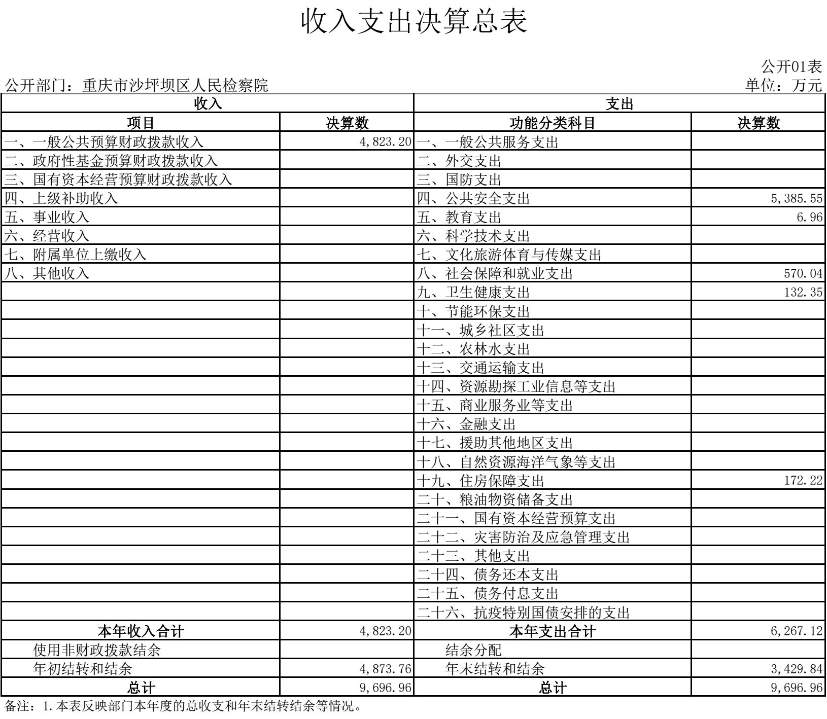 重庆市沙坪坝区人民检察院2022年度部门整体绩效自评表 |