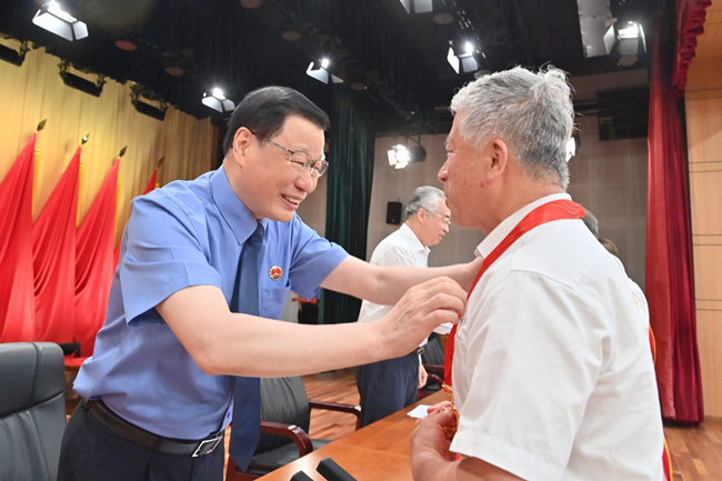 中央第二十二指导组组长许又声到会指导。最高检党组副书记、常务副检察长童建明宣读表彰决定,党组成员、政治部主任潘毅琴主持会议。大会为“光荣在党50年”老党员代表颁发纪念章,为2022年以来荣获全国荣誉称号的个人、集体和最高检机关荣获“两优一先”的个人代表和集体颁奖。