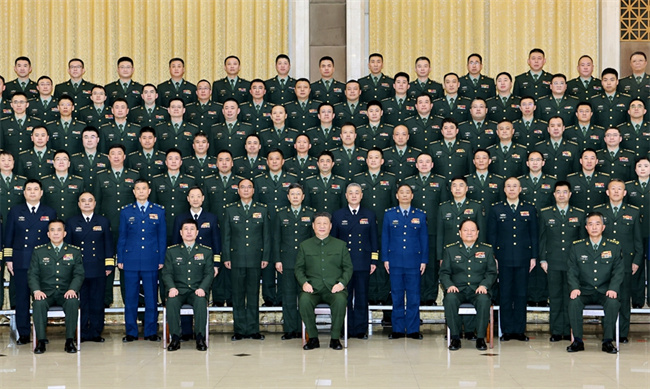 1月24日,中共中央总书记、国家主席、中央军委主席习近平到北部战区机关视察慰问,通过视频看望基层官兵,检查部队战备值班和执行任务情况,代表党中央和中央军委,向全体人民解放军指战员、武警部队官兵、军队文职人员、预备役人员和民兵致以诚挚问候和新春祝福。这是习近平同北部战区官兵代表合影留念。新华社记者 李刚 摄