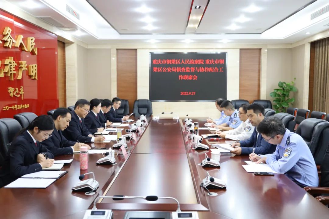 9月27日,铜梁区检察院与区公安局联合召开侦查监督与协作配合工作联席会议,该院党组书记、检察长冉劲,区公安局党委书记、局长夏斌出席会议。