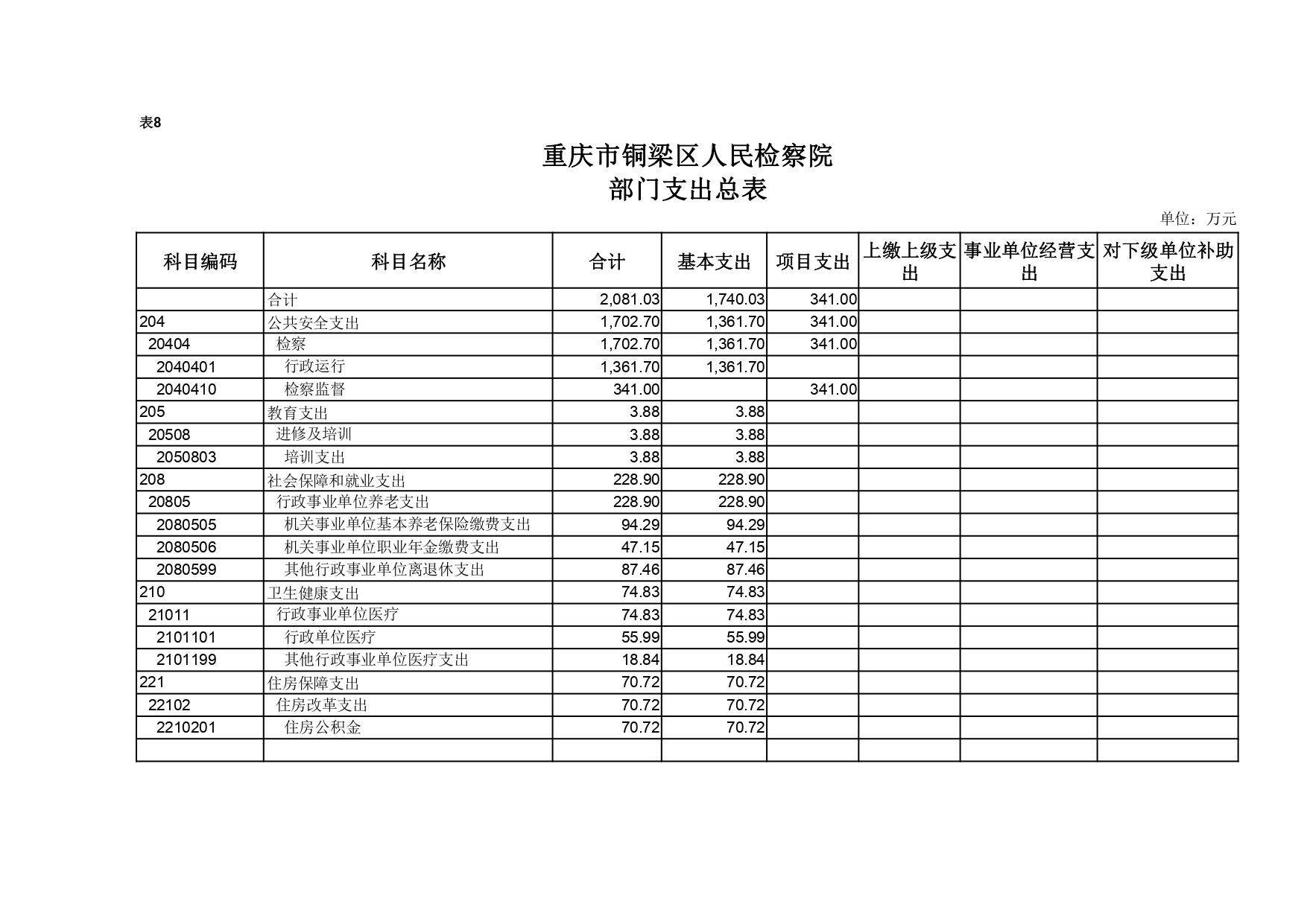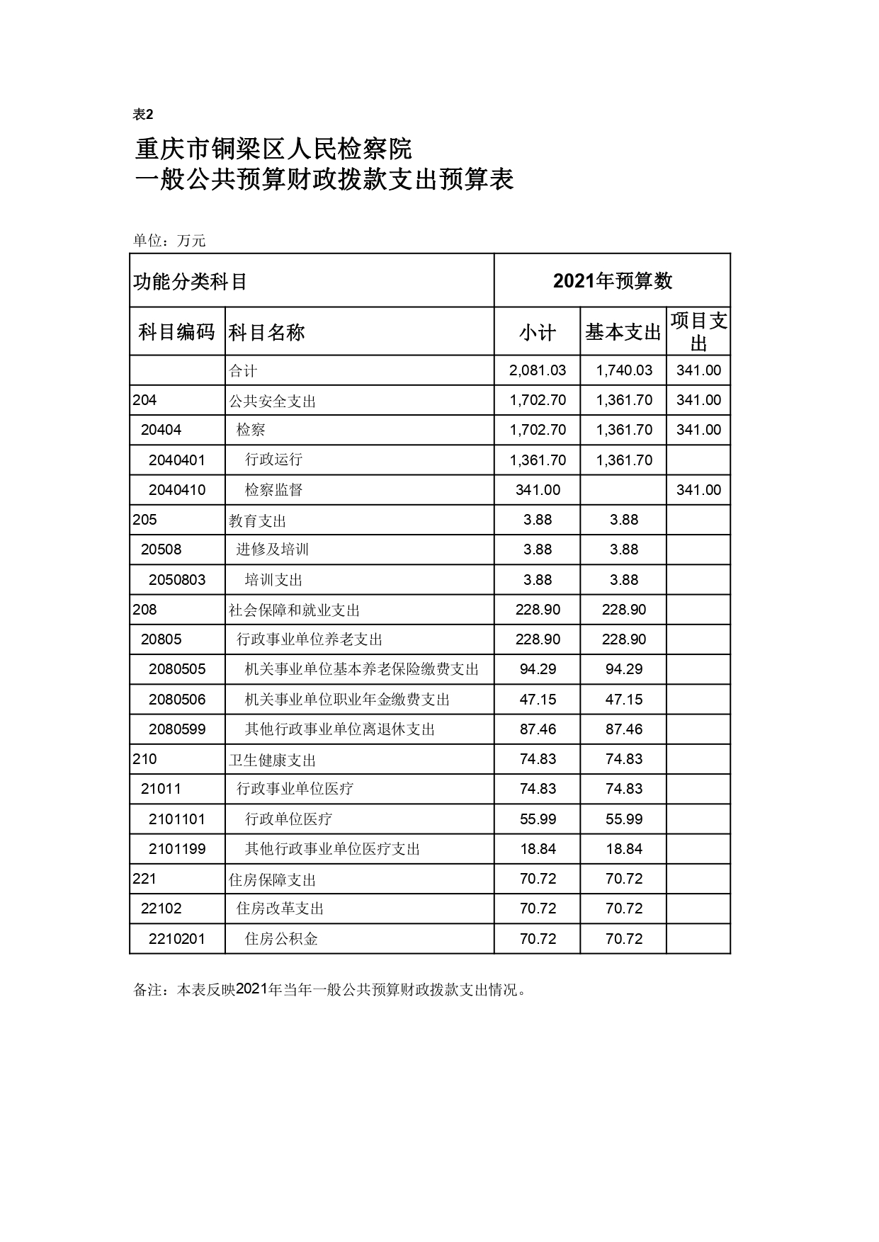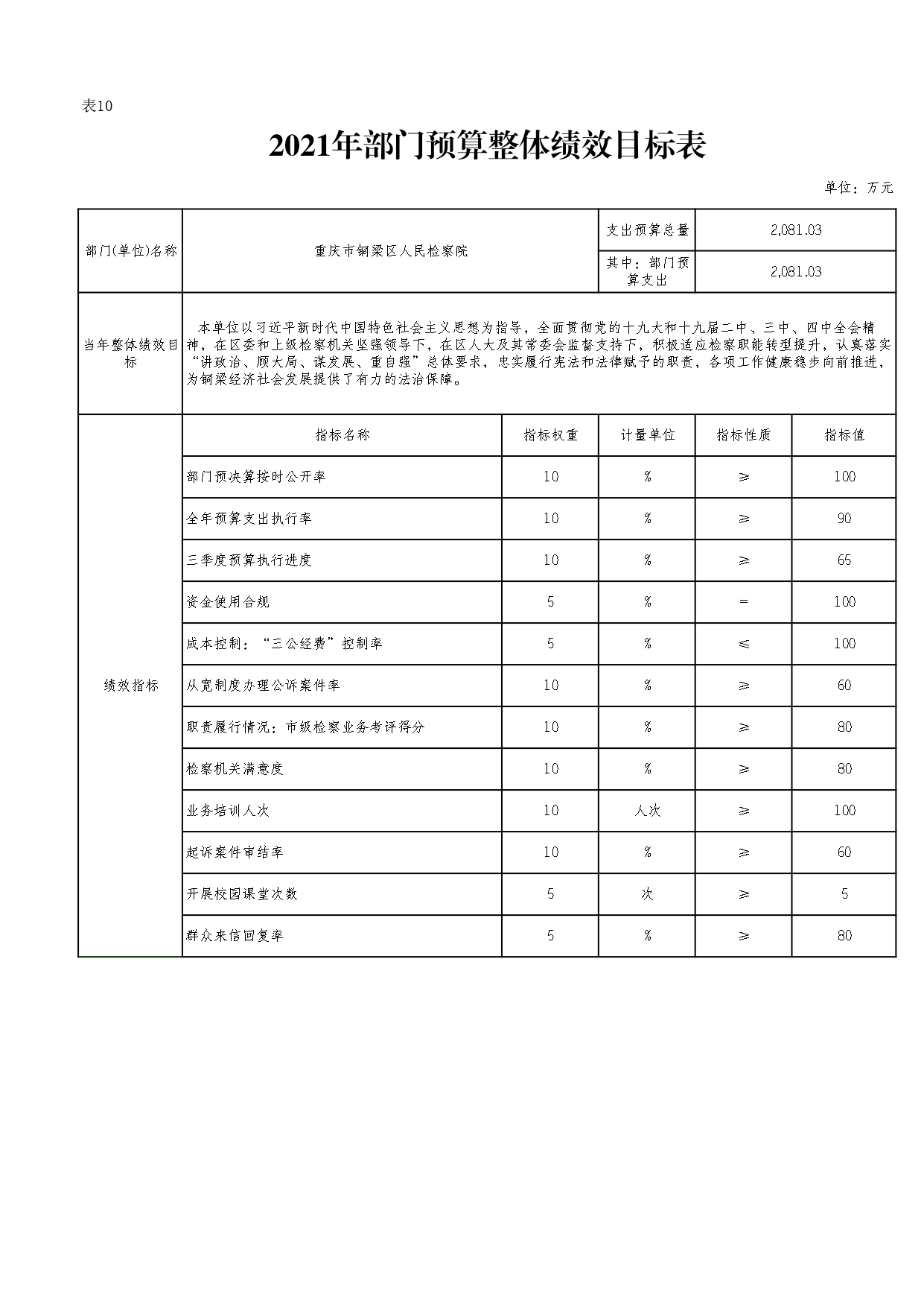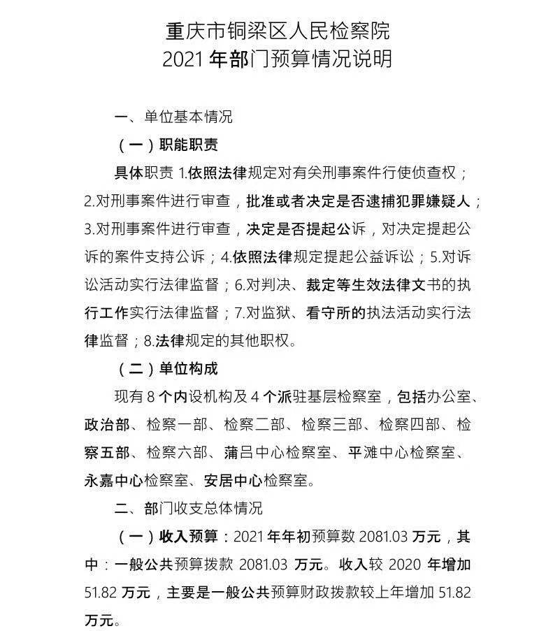 重庆市铜梁区人民检察院2021年部门预算公开