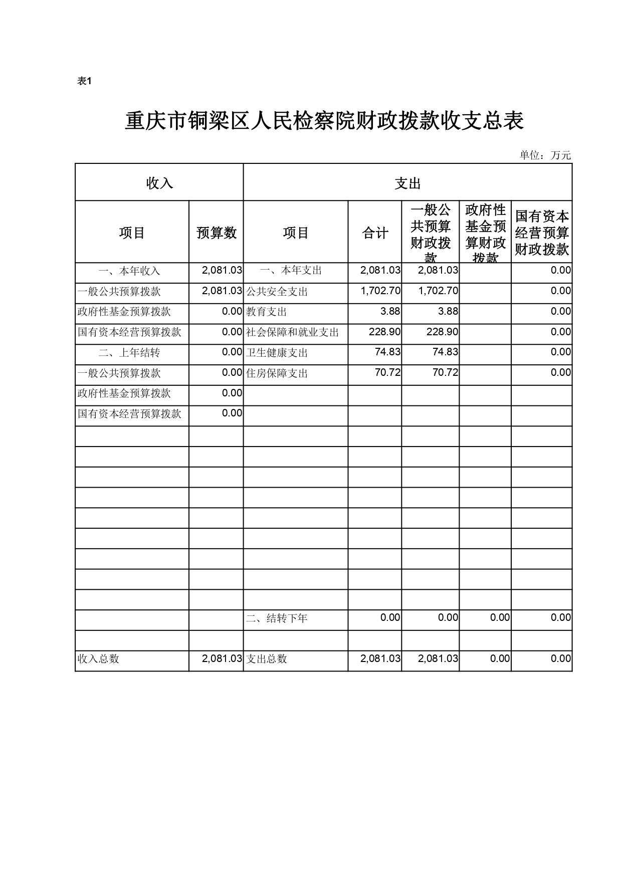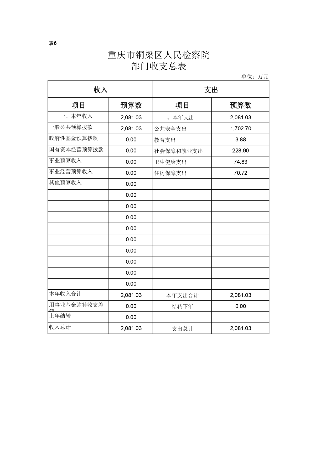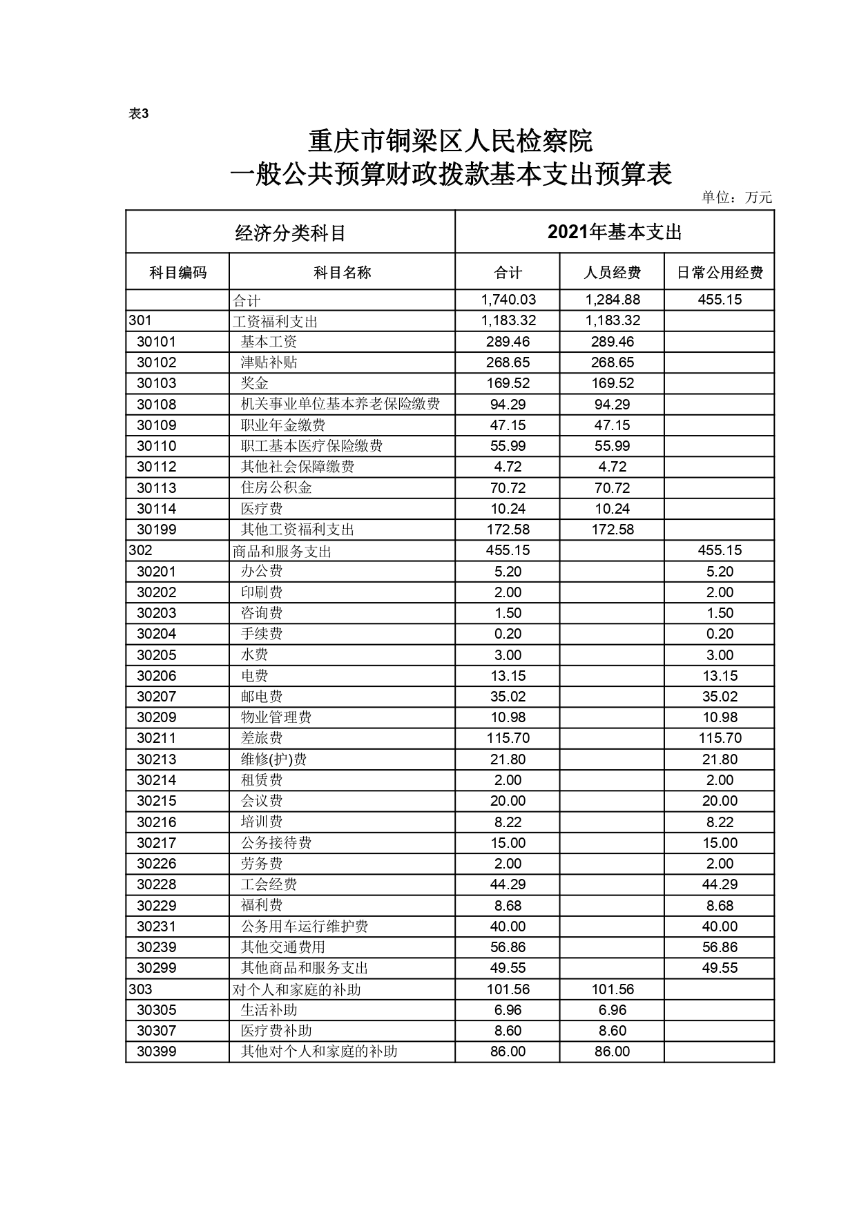 重庆市铜梁区人民检察院2021年部门预算公开