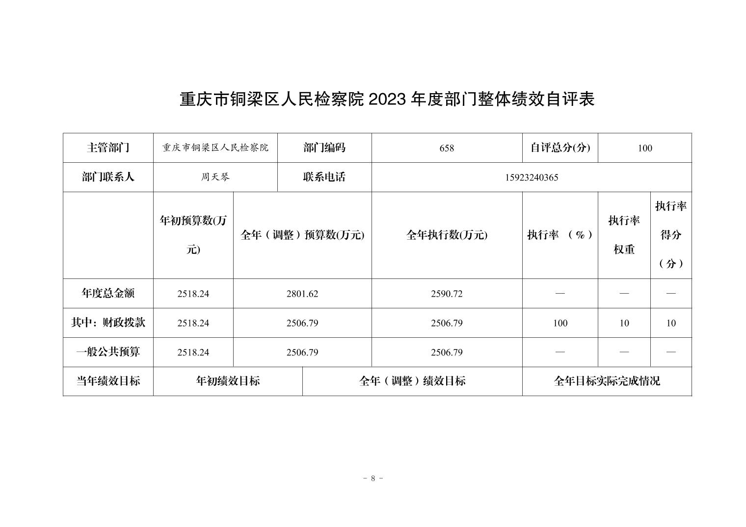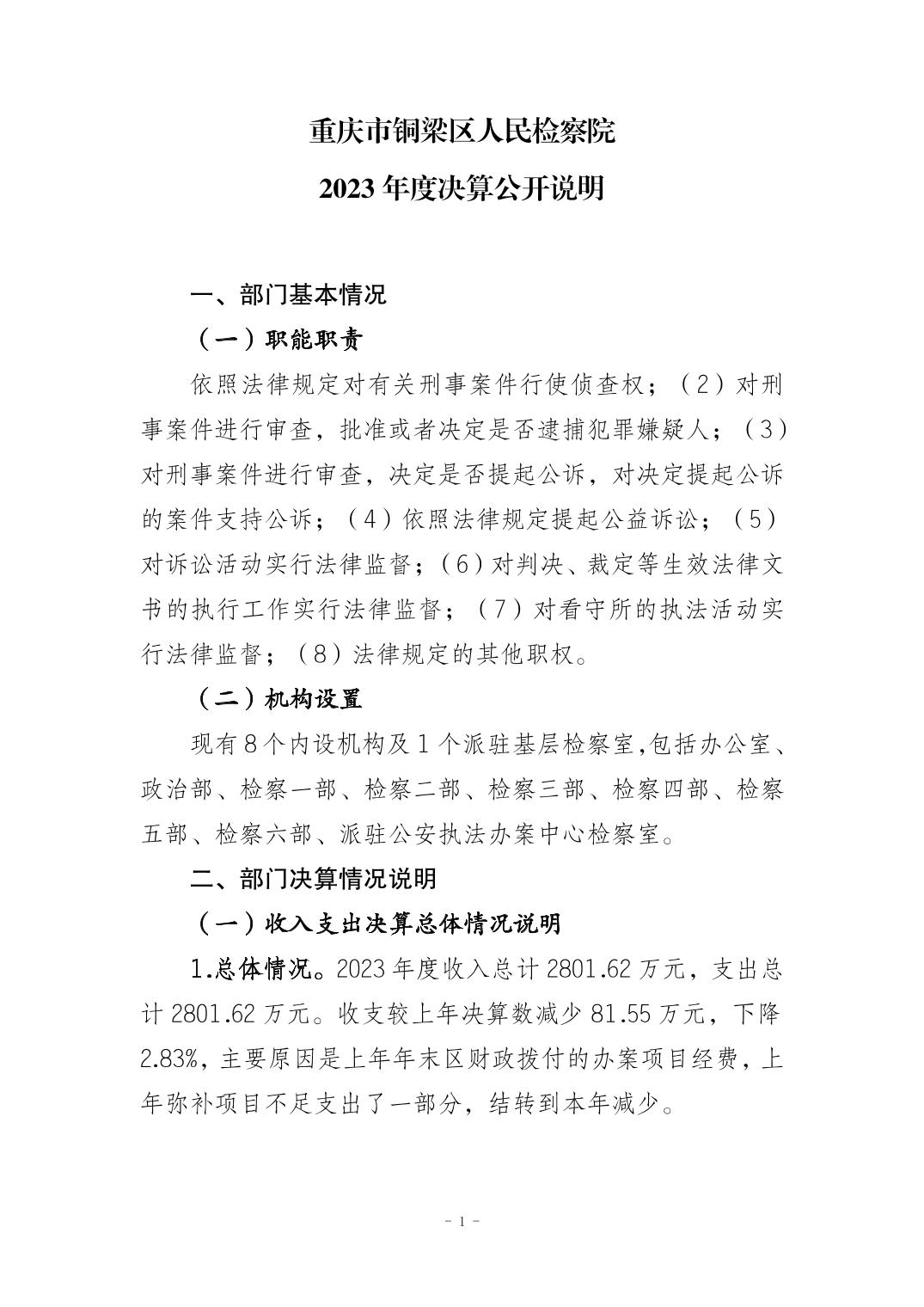 重庆市铜梁区人民检察院2023年部门决算公开