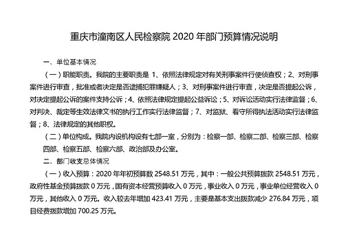重庆市潼南区人民检察院2020年部门预算公开