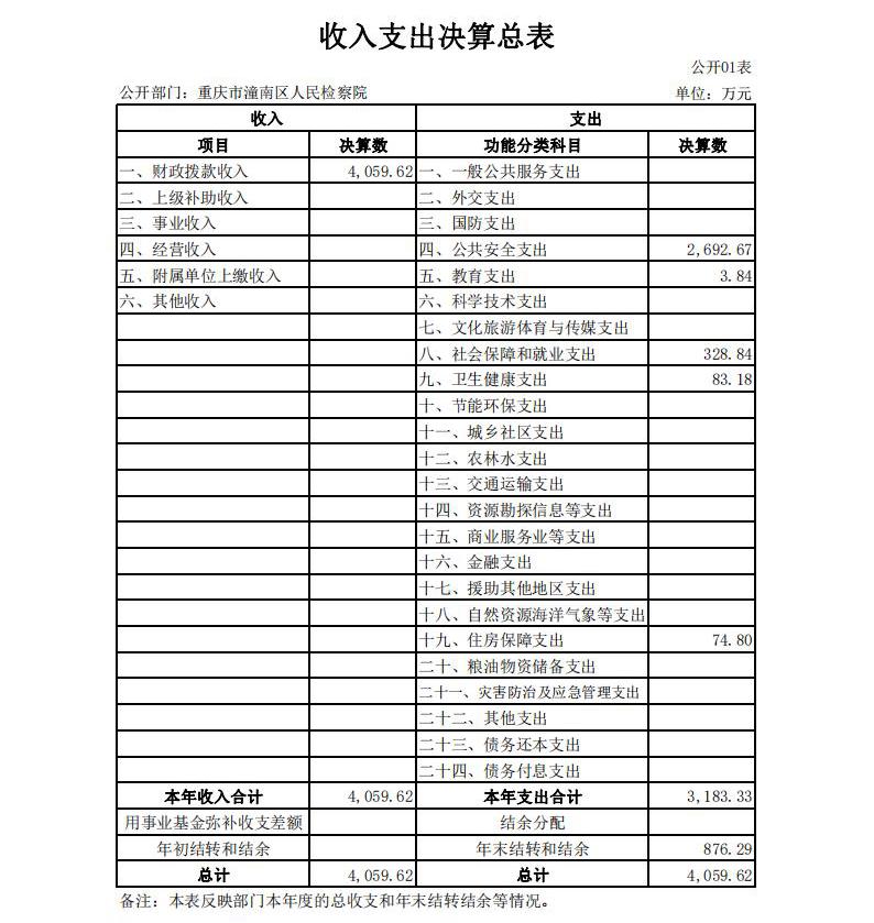重庆市潼南区人民检察院2019年度部门决算公开数据.pdf