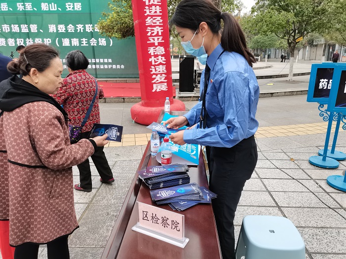 3月14日,我院参加消费者协会组织的3·15普法宣传活动,与安岳、船山等川渝五区县相关人员一起通过派发宣传单、现场讲解的方式普及消费者权益保护方面的法律法规。
