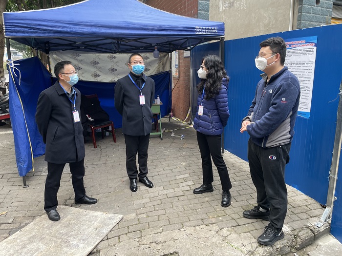 面对当前严峻的疫情防控态势,潼南区检察院按照区委组织部工作安排,积极响应号召,组织干警全力投入疫情防控工作。检察长宋川带头下沉小区,助力疫情防控。各干警在执勤点位卡口上做好宣传引导,协助强化社会面管控。为指导干警科学防疫,检察长宋川与政治部主任颜利华、纪检组长王飞走访干警执勤岗位,查看防疫力量配备、后勤保障等情况。