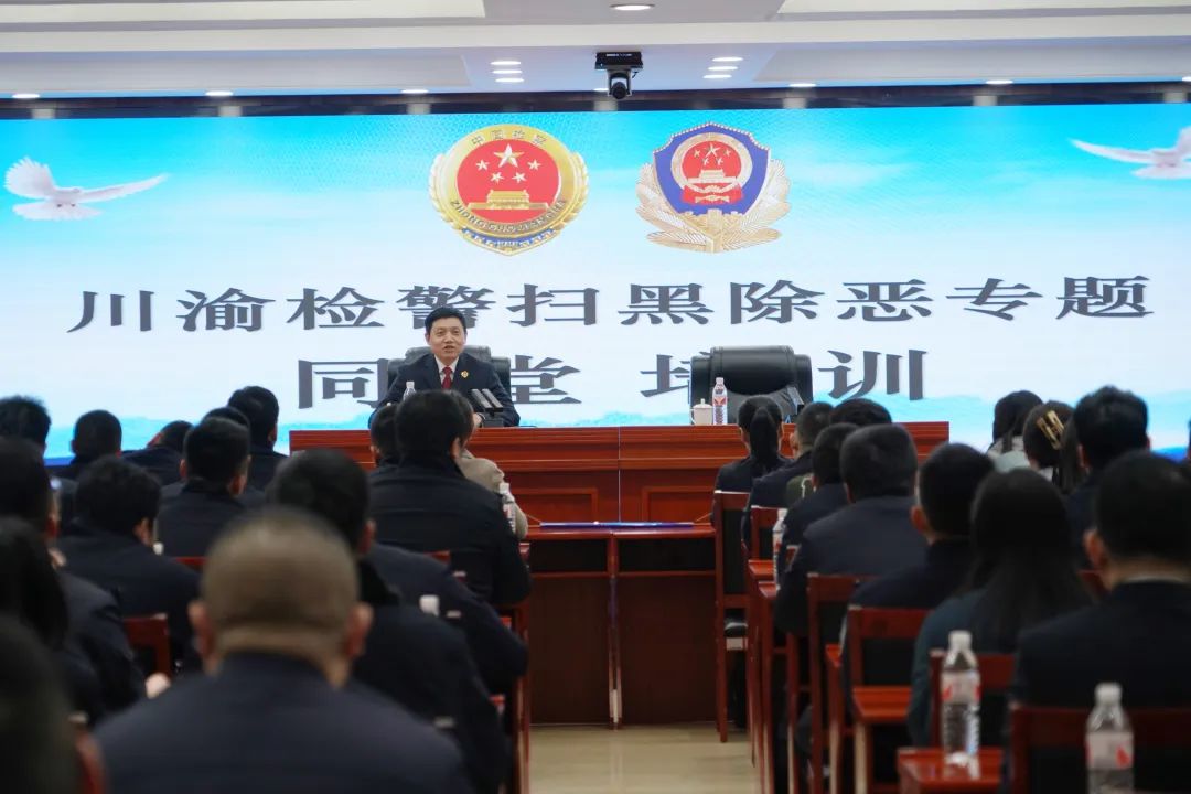 为深入学习贯彻《反有组织犯罪法》,进一步凝聚川渝检警共识,有效提升办案质效,依法严惩有组织黑恶势力犯罪,推动常态化扫黑除恶斗争深入开展,我院联合重庆市公安局渝北区分局、两江新区分局、机场分局及四川省邻水县人民检察院,于2024年3月19日下午开展了为期半天的专题检警同堂培训暨第一期刑检领航大讲堂,川渝两地200余名检警业务骨干应邀参加培训。