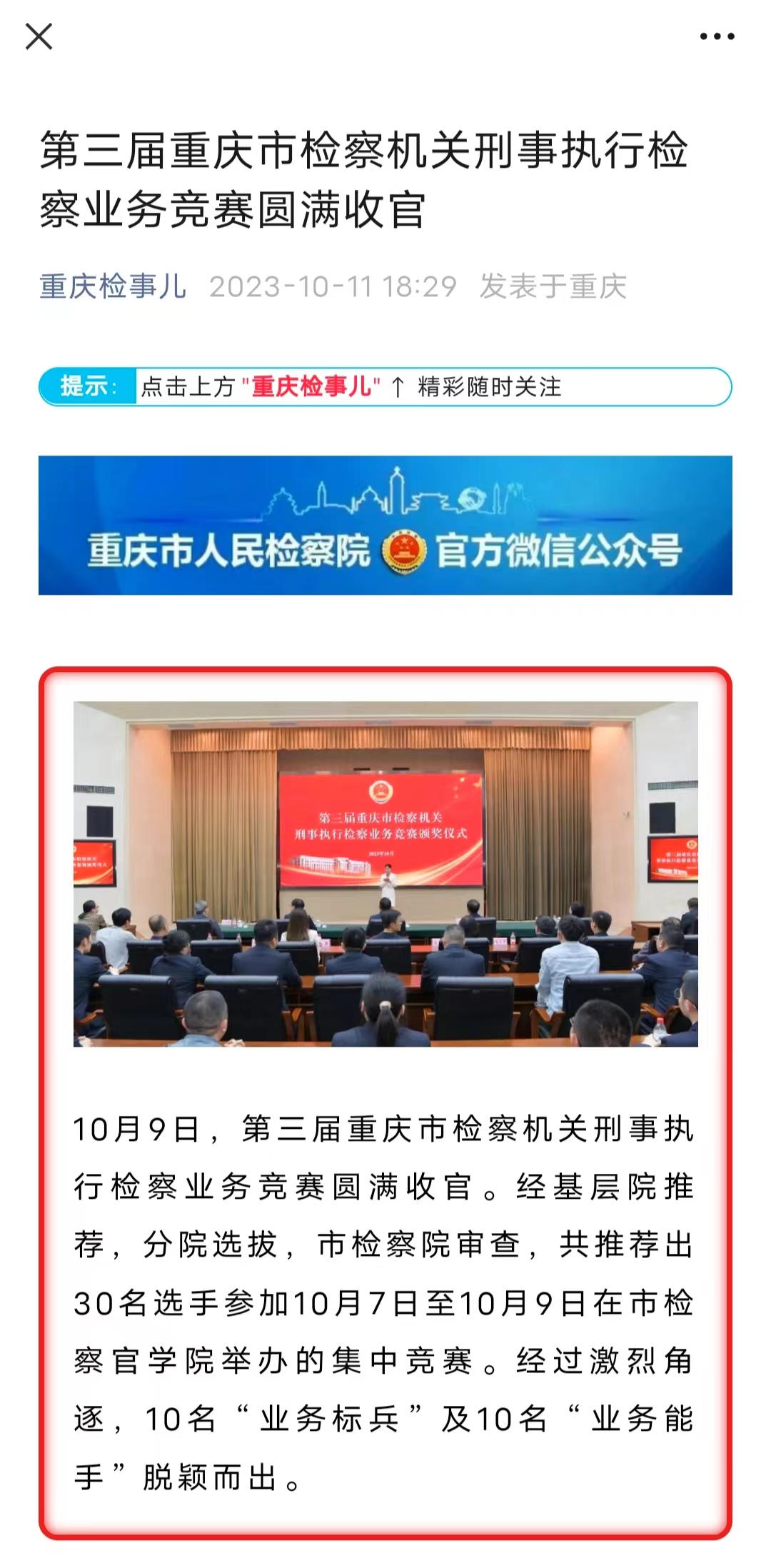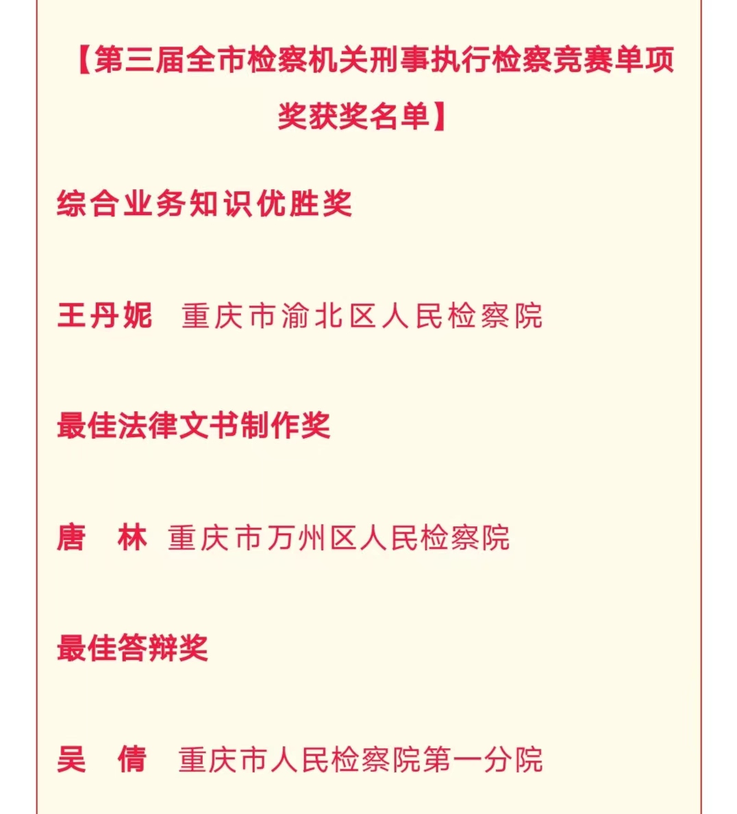王丹妮、卢继玉在全市检察机关刑事执行检察业务集中竞赛中荣获标兵称号