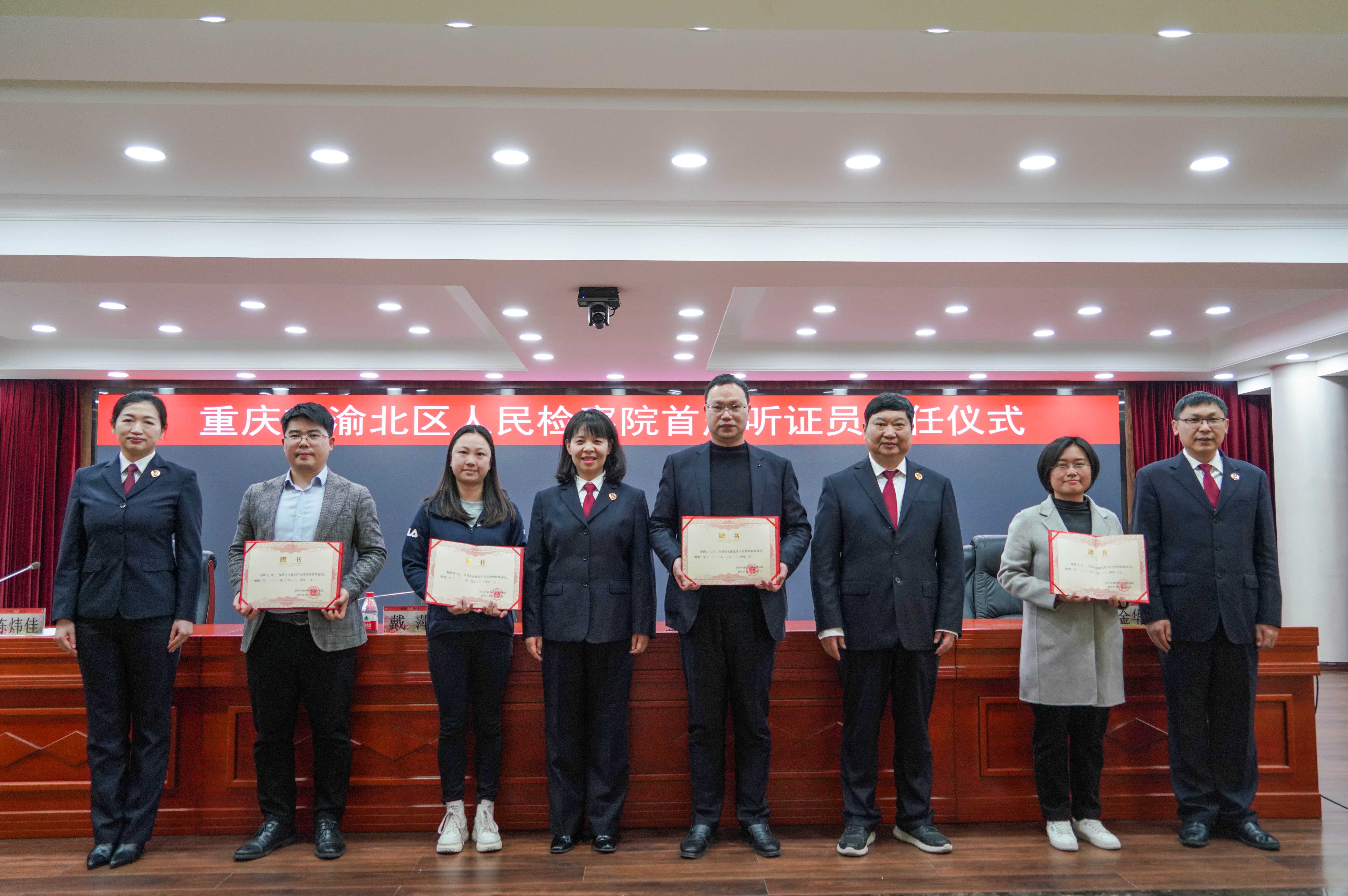 聘任仪式上,渝北区检察院党组书记、检察长戴萍为首批纳入听证员库的听证员代表颁发聘书,聘期为两年。听证员包括人大代表、政协委员、人民调解员、专家学者、律师,以及居委会、村委会、公益组织、行业协会等组织的人员,通过检察机关主动邀请、单位推荐、个人自荐等多种方式予以确认。