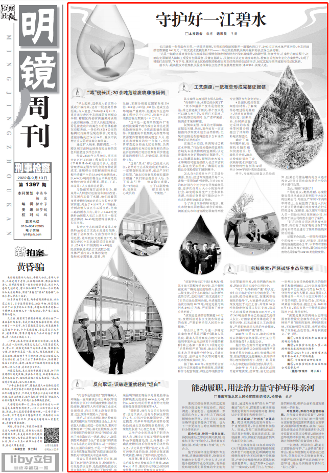 2022年9月13日,《检察日报》第5版“明镜周刊”刊登《守护好一江碧水》一文,内容如下:
