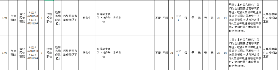 渝北区人民检察院共招录