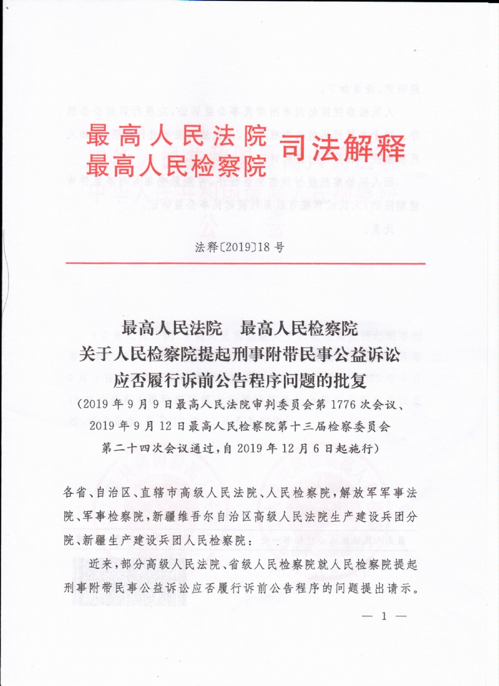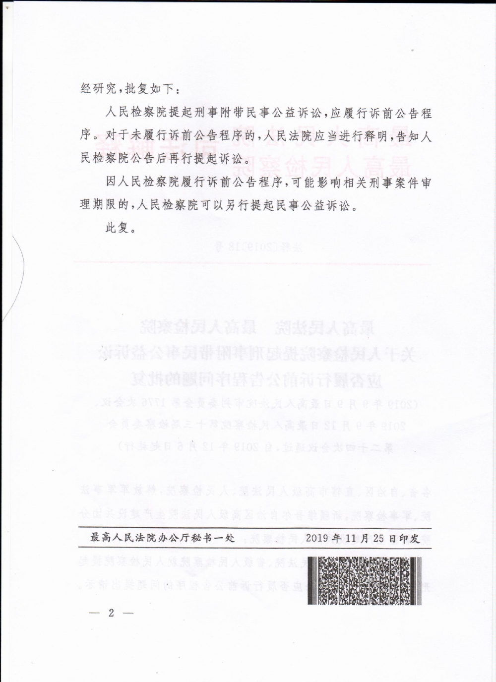 工作流程——最高人民法院+最高人民检察院关于人民检察院提起刑事附带民事公益诉讼应否履行诉前公告程序问题的批复