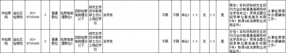 渝北区人民检察院共有5个岗位哦!期待优秀的你加入!