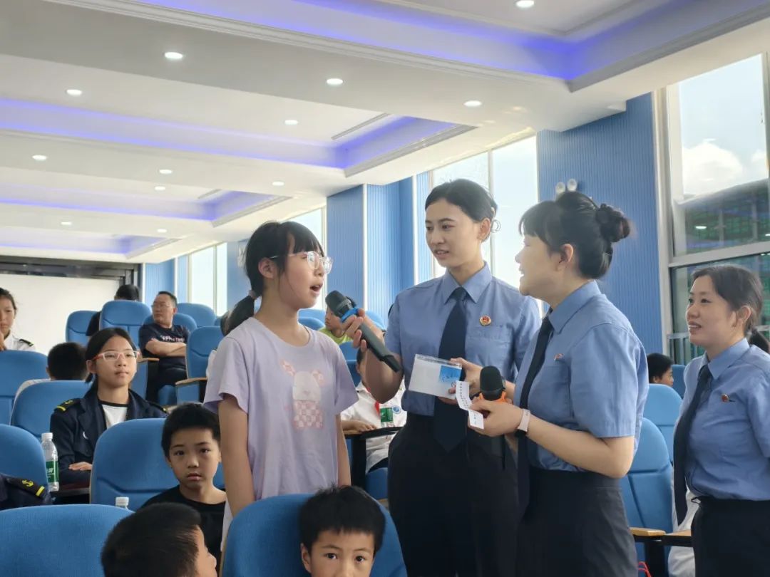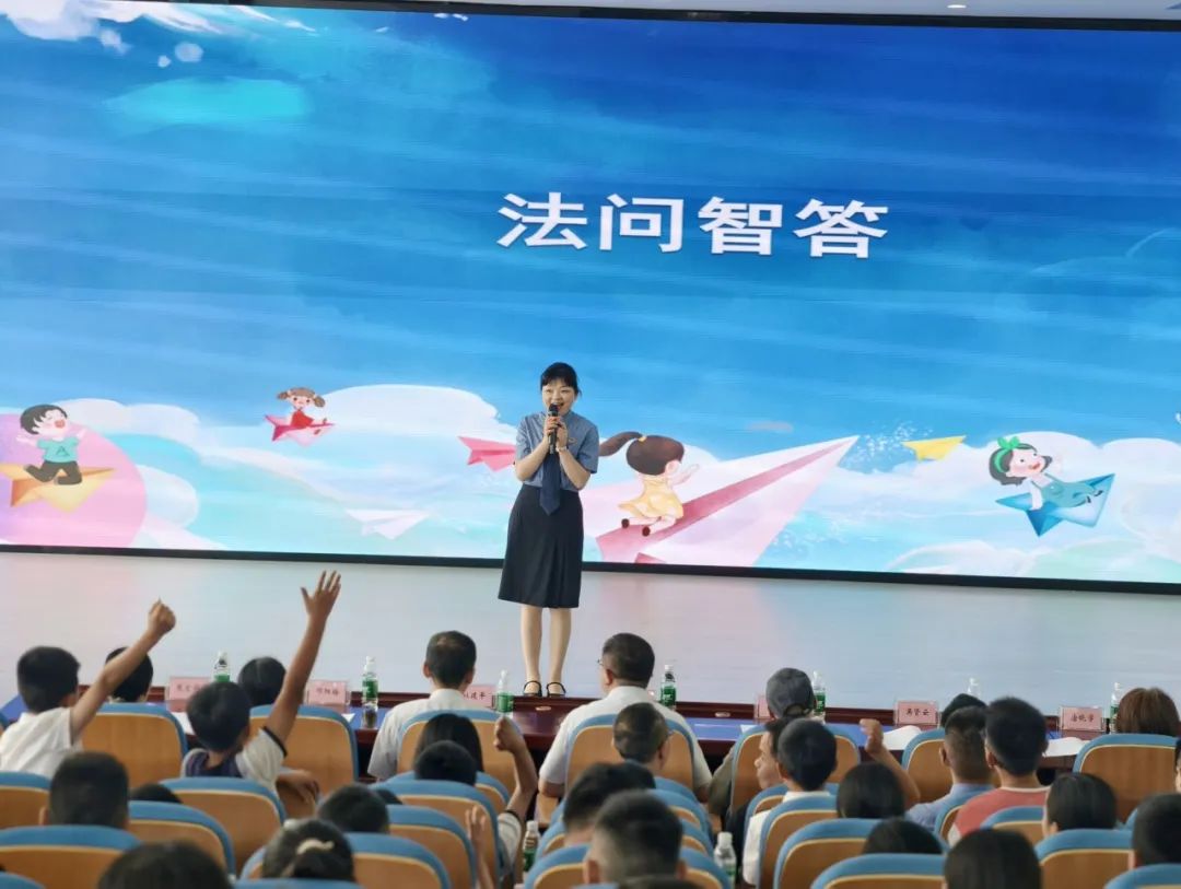 随后,广安市前锋区检察院检察官赵静、邻水县国家中级心理社工刘惠分别围绕防范校园欺凌、预防性侵害两大主题开展法治宣讲,通过情景模拟和案例分析的形式,引导同学们认识和预防校园欺凌及性侵害行为,切实增强同学们自我保护意识;“法问智答”环节中,同学们踊跃举手,争相抢答问题,活学活用刚刚学到的法律知识,并收获了丰富的小礼品。