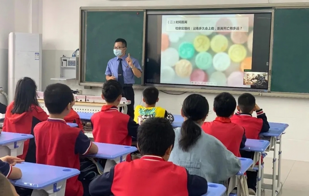 这么好看的东西为什么碰不得?来自市检察一分院和渝北区检察院的检察官们拿着看似美丽、新鲜的仿真毒品给孩子上了一堂生动的普法课,从毒品的种类、由来讲到毒品的危害、涉毒犯罪的处罚等。“近年来青少年毒品犯罪的低龄化趋势较为明显,且未成年人的防范心理、认知程度较弱,一些不法分子会利用未成年人实施毒品犯罪。”李文泽说,这也是普法活动选择在中小学生中进行的重要原因。