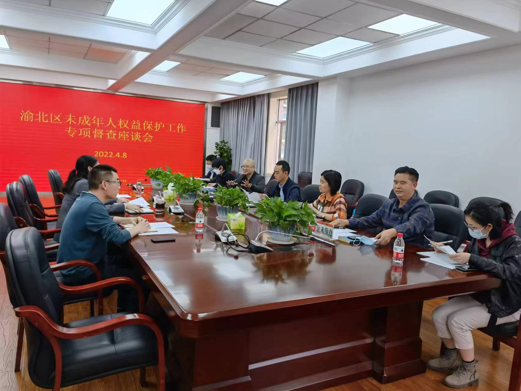 2022年4月8日,渝北区未成年人权益保护工作专项督查组来我院开展渝北区创建未成年人保护示范区专项督查。区委政法委、人大、检察院、民政局等相关部门人员代表以及律师代表参加了会议。