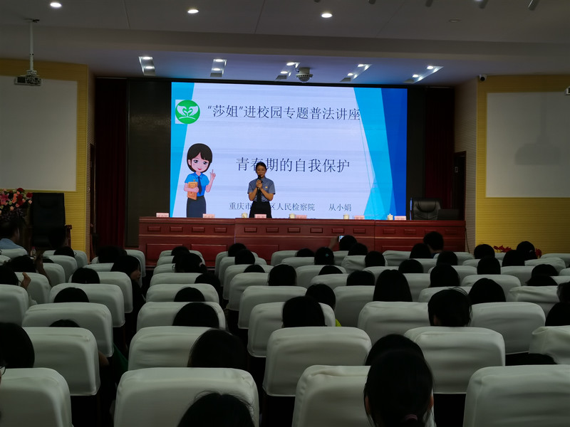 7月1日下午,我院在重庆市渝北区统景中学开展2022年暑期“共护未来”普法安全教育活动。活动中,我院“莎姐”检察官从小娟以案说法,为该校150余名女生带来了《青春期的自我保护》专题普法讲座,引导学生强化暑期犯罪预防和安全事故防范。